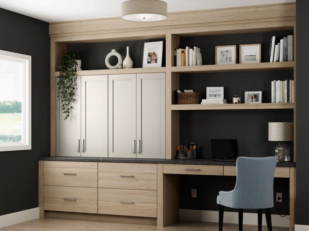 To create the perfect workspace, use custom home office cabinets with built-in desks, smart storage, and lighting. Our designs at Laslo Custom Kitchens optimize space and productivity.