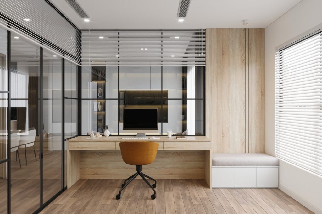 For multi-purpose rooms, the challenge lies in creating discrete workspaces that can be easily concealed when not in use. Innovative solutions might include pocket doors that slide out to hide the office area, or built-in office cabinets with desk components that can be tucked away at day’s end. These versatile designs ensure that your home office doesn’t compromise the room’s other functions while maintaining full professional functionality when needed.